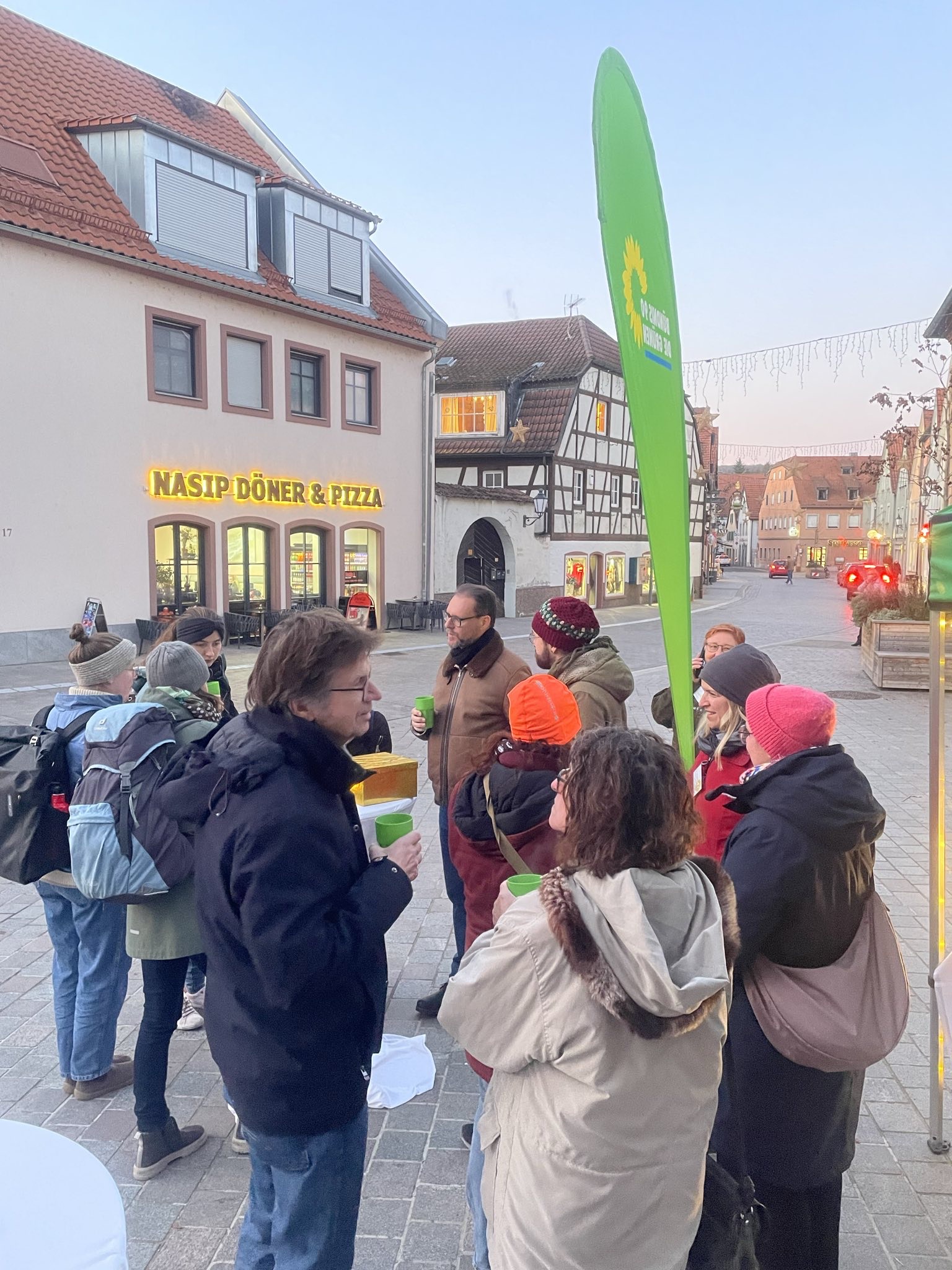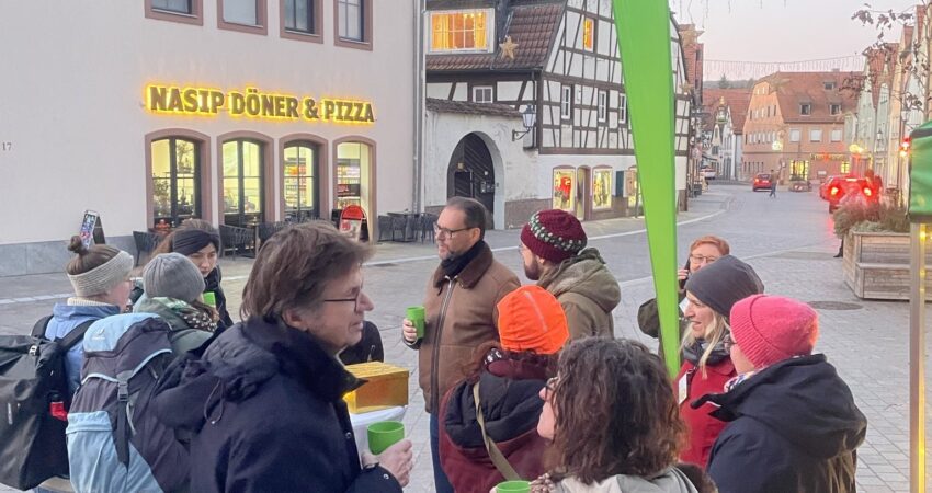 Beste Stimmung herrschte, als sich Grüne Kandidatinnen. und Kandidaten bei leckerem Punsch den Fragen und Ideen der Veitshöchheimer*innen stellten. Interessierte konnten direkt Kontakt aufnehmen oder Karten mit Wünschen/Ideen für Veitshöchheim beschreiben. Auch die eisige Kälte hielt viele nicht davon ab sich Punsch, Kuchen, Muffins und mehr schmecken zu lassen und dabei die Kandidat´innen kennenzulernen. Zwei Stunden vergingen wie im Flug, die Kannen waren leer und alle beendeten gutgelaunt den anregenden Nachmittag.