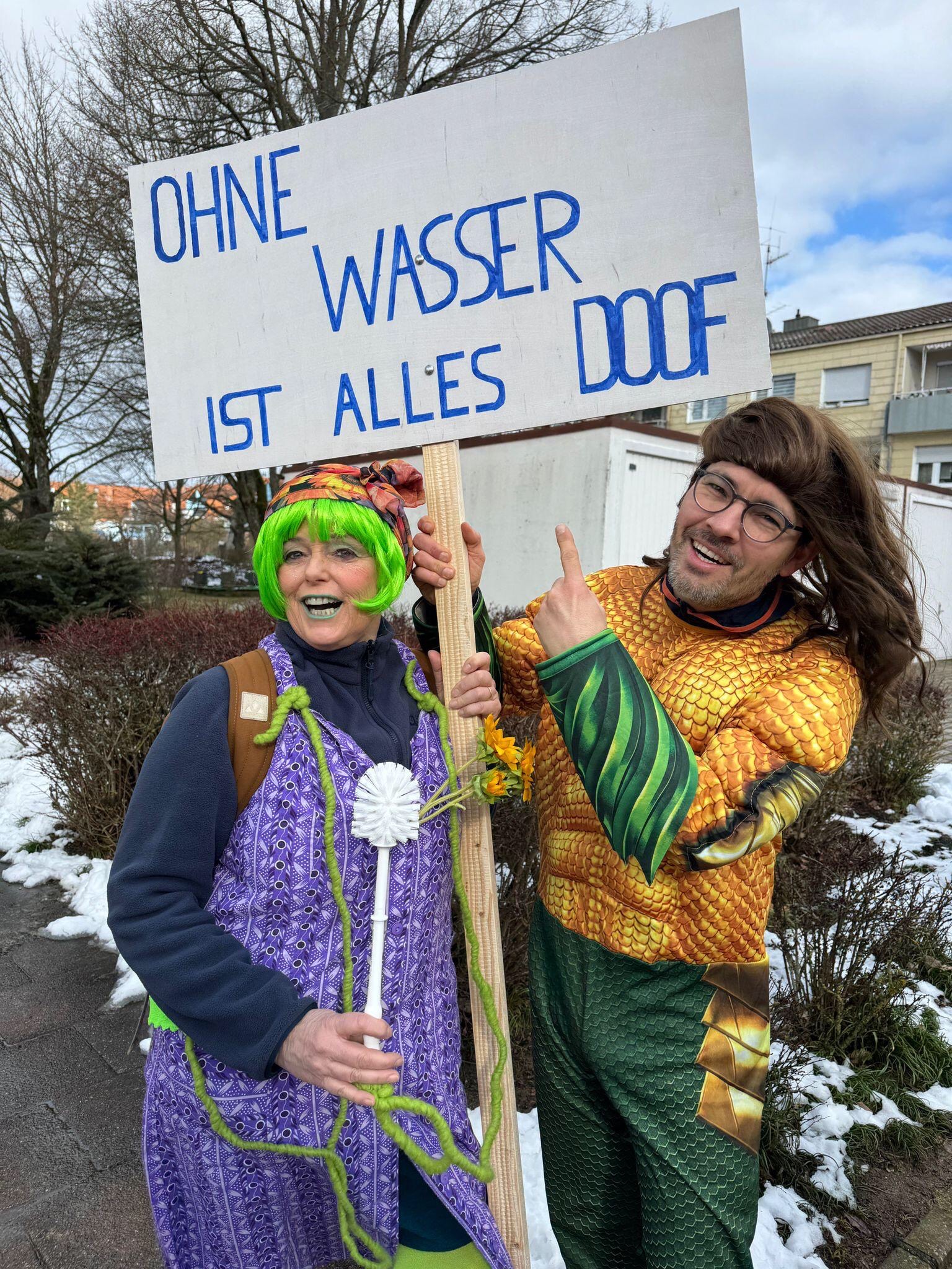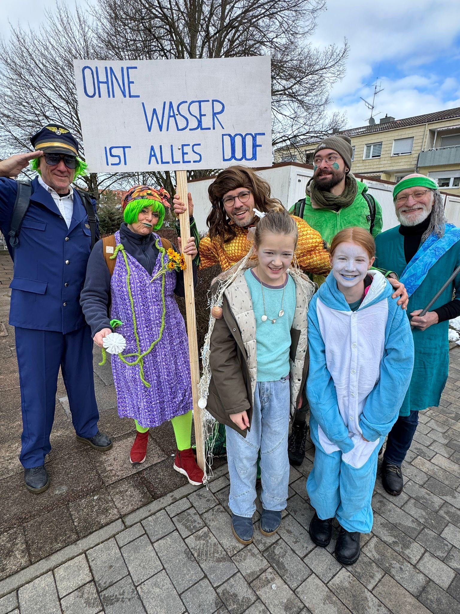 Das Motto hieß: „Ohne Wasser ist alles doof“! Gedacht war das Motto als Hinweis auf die Wasserknappheit in Unterfranken und die dringende Notwendigkeit Wasser zu schützen (Gipsbergwerk kontra Wasserschutzgebiet) und in der Region zu halten (nutzen und versickern). Da es zeitweise regnete bekam das Motto aber auch einen anderen Zungenschlag.