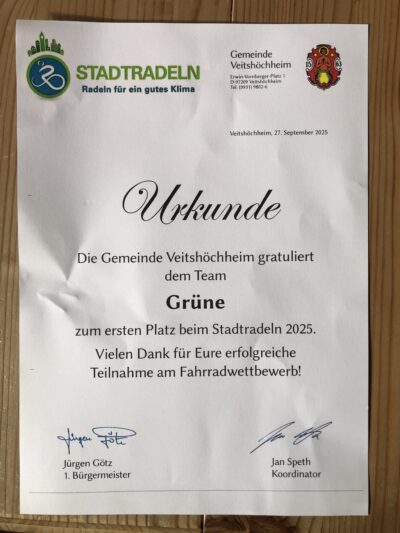 Seit 13 Jahren gibt es das Stadtradeln in Veitshöchheim. Auf Anregung der Grünen hin eingeführt, beteiligt sich das Team „Grüne“ von Anfang an ohne Unterbrechung. Bereits zum zehnten Mal kam…